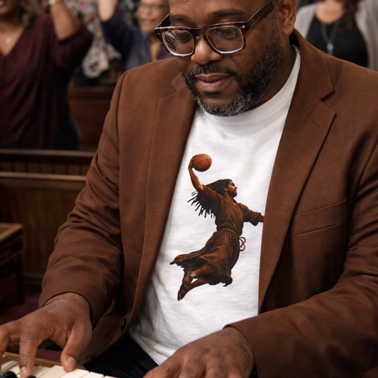 Faith meets hang time when Jesus rises, the Kingdom dunks. Hoops, hope, and holy confidence in one bold tee.