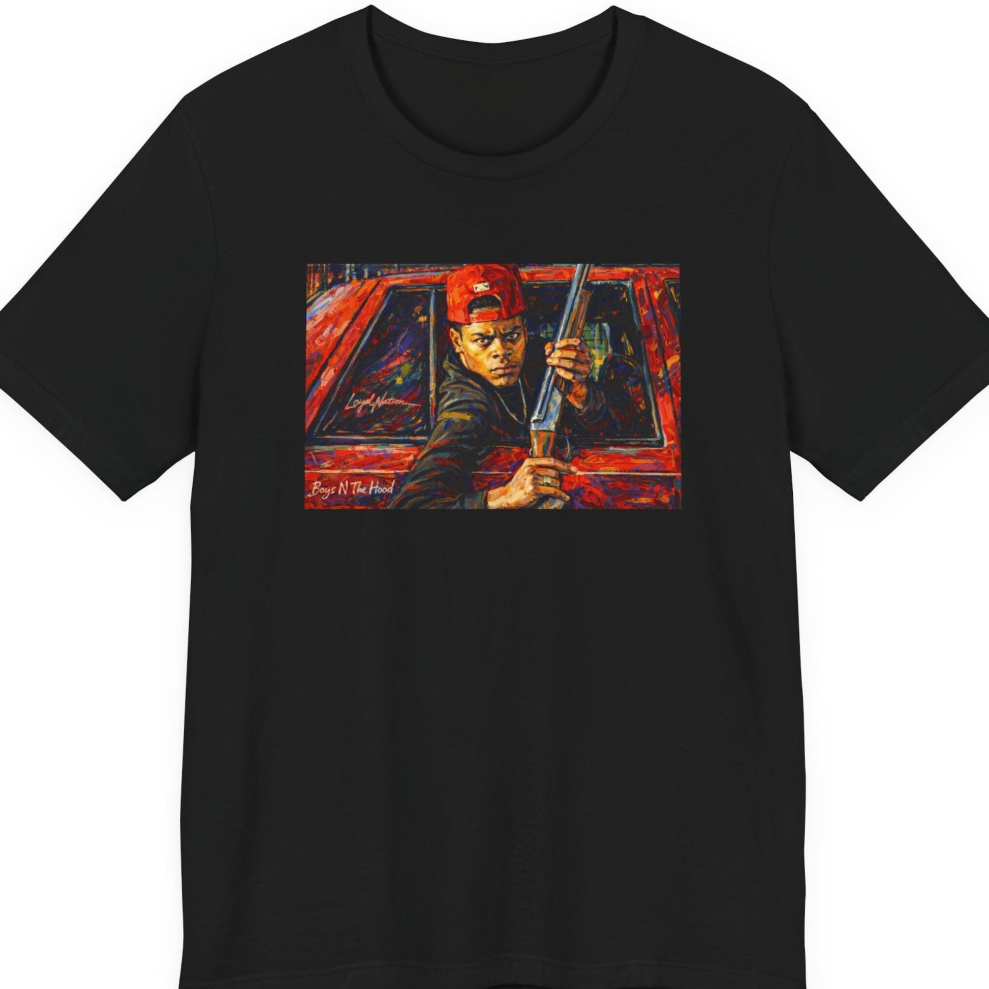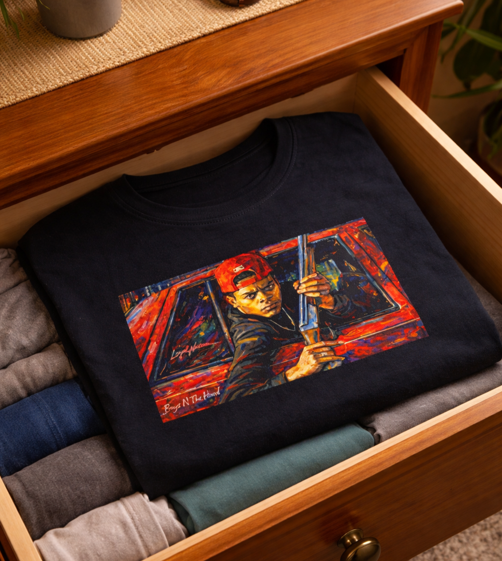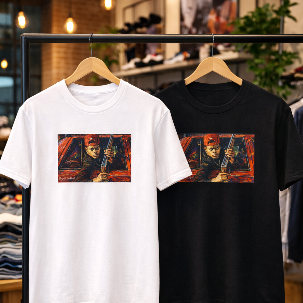 This tee captures a split second that echoes far beyond the screen—a moment where fear, loyalty, and tragedy collide. It represents the fragile line between protection and destruction, and how quickly Black lives are altered by choices made in seconds. More than a scene, it’s a mirror reflecting how Black men are often forced into cycles of survival that pit community against itself. Wearing this shirt is an acknowledgment of that reality and a call to break the pattern. ITEM INFORMATION Classic unisex jersey short-sleeve tee, fits like a favorite. Soft cotton and quality printing will make this shirt a staple in your wardrobe. ribbed knit collar shoulders have taping for better fit tear away labels light weight (4.2 oz/yd² (142 g/m²) COLOR INFORMATION The colors and saturation can be displayed differently in each device. The item and graphic color may not precisely resemble those in the pictures. Please note: fiber content may vary for different colors. SIZING Unisex sizing, runs true to size, retail fit. - T-shirts are 100% Cotton. BE ADVISED: will shrink if dried in HIGH HEAT. - If you have any additional sizing questions, message me and I will do my best to guide you! SHIPPING - FREE SHIPPING on all orders! - Please CHECK YOUR SHIPPING ADDRESS prior to your purchase. - Items arrive within 5-7 Business days. -Returns & Exchanges not accepted but please contact me should you have a problem with your order. PRINTING PROVIDER I use a quality printing provider to help complete my orders. I create, they print, package and ship. They are extremely careful and efficient. They also make mistakes sometimes. If there is ever an issue with your garment, please message me and I will send you another one for free. Please message me with any additional questions. Thank you for supporting my small business!!! REVIEWS Please send a message if you have any issues or are unsatisfied with your order before leaving negative feedback or review. I will be excited to help resolve any issues.