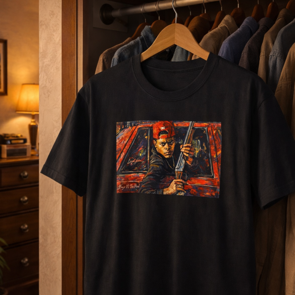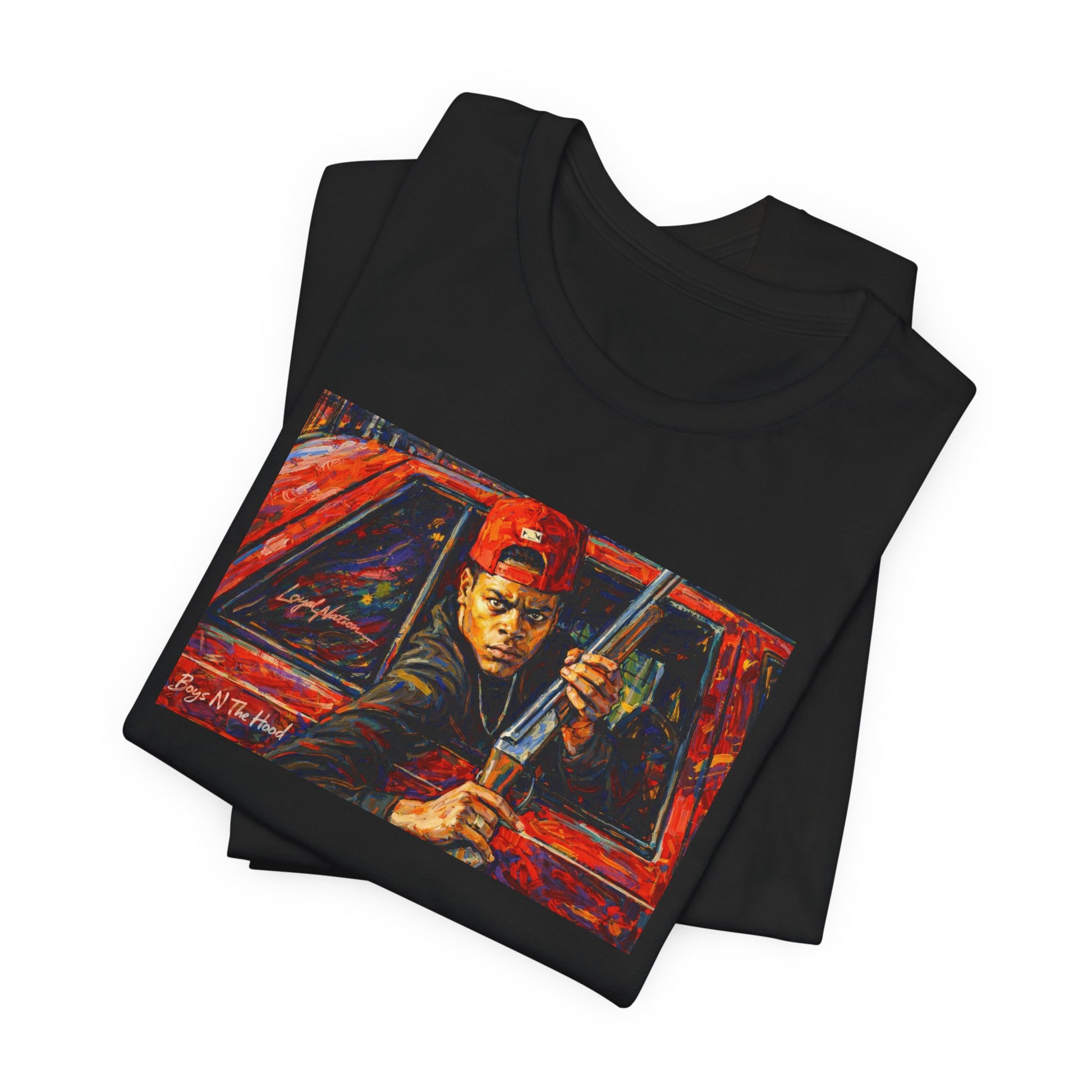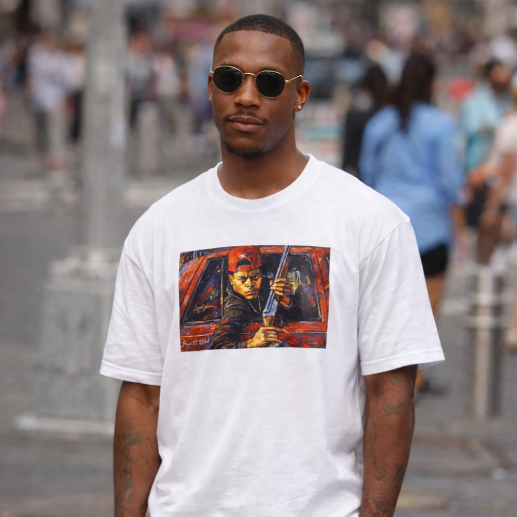 This tee captures a split second that echoes far beyond the screen—a moment where fear, loyalty, and tragedy collide. It represents the fragile line between protection and destruction, and how quickly Black lives are altered by choices made in seconds. More than a scene, it’s a mirror reflecting how Black men are often forced into cycles of survival that pit community against itself. Wearing this shirt is an acknowledgment of that reality and a call to break the pattern. ITEM INFORMATION Classic unisex jersey short-sleeve tee, fits like a favorite. Soft cotton and quality printing will make this shirt a staple in your wardrobe. ribbed knit collar shoulders have taping for better fit tear away labels light weight (4.2 oz/yd² (142 g/m²) COLOR INFORMATION The colors and saturation can be displayed differently in each device. The item and graphic color may not precisely resemble those in the pictures. Please note: fiber content may vary for different colors. SIZING Unisex sizing, runs true to size, retail fit. - T-shirts are 100% Cotton. BE ADVISED: will shrink if dried in HIGH HEAT. - If you have any additional sizing questions, message me and I will do my best to guide you! SHIPPING - FREE SHIPPING on all orders! - Please CHECK YOUR SHIPPING ADDRESS prior to your purchase. - Items arrive within 5-7 Business days. -Returns & Exchanges not accepted but please contact me should you have a problem with your order. PRINTING PROVIDER I use a quality printing provider to help complete my orders. I create, they print, package and ship. They are extremely careful and efficient. They also make mistakes sometimes. If there is ever an issue with your garment, please message me and I will send you another one for free. Please message me with any additional questions. Thank you for supporting my small business!!! REVIEWS Please send a message if you have any issues or are unsatisfied with your order before leaving negative feedback or review. I will be excited to help resolve any issues.